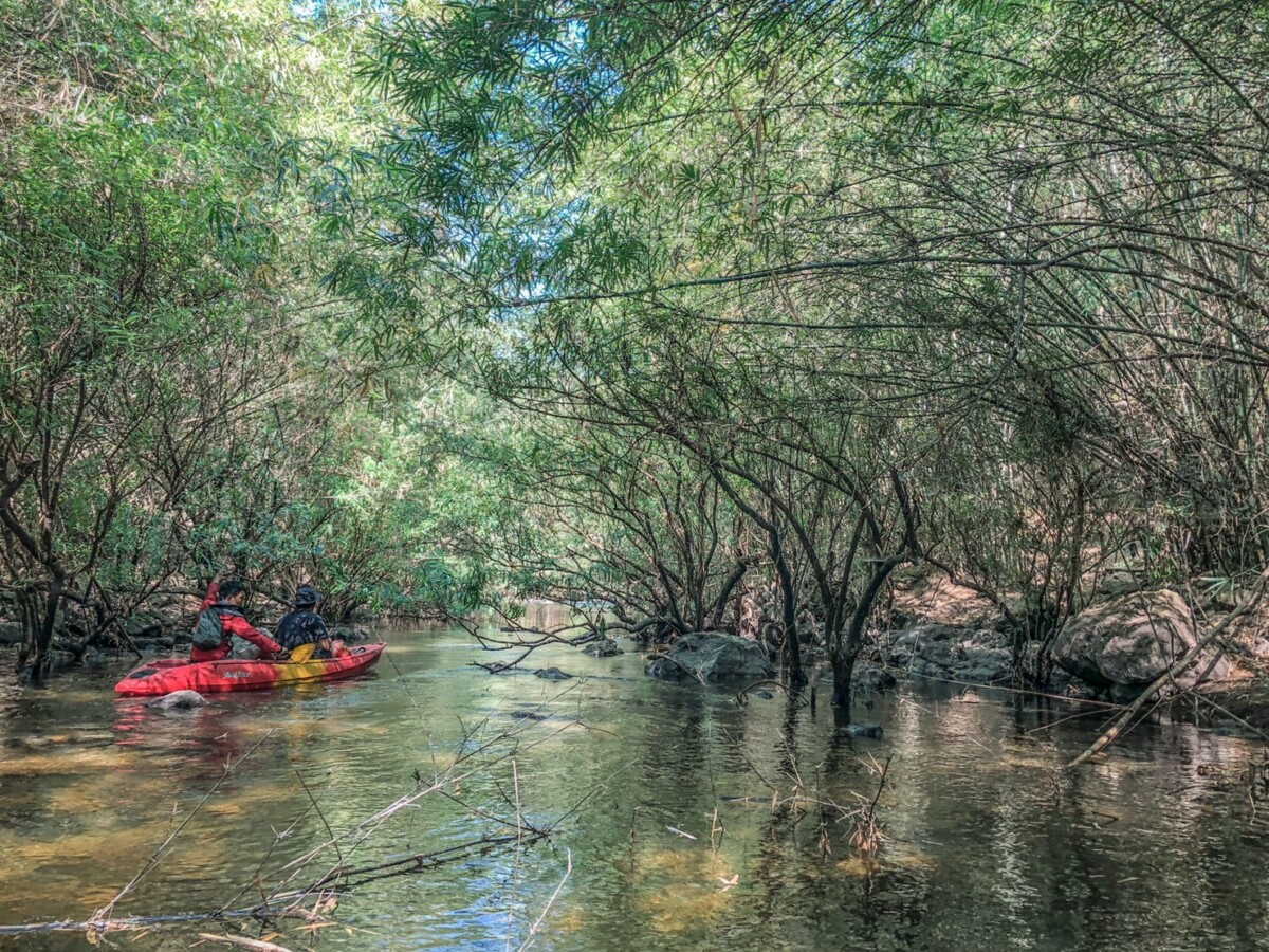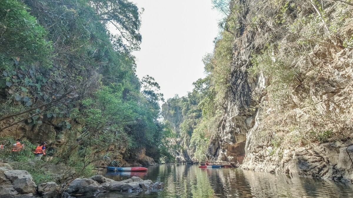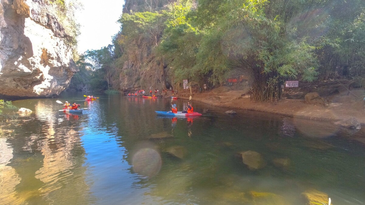 ⇑ภาพด้านบน การเดินทางเข้าไปชมด้านในของผาหอบนั้นเดินทางโดยเรือคายัก และแพไม้ไผ่ครับ ธรรมชาติความสวยงามภาพในผาหอบนั้นบอกเลยว่า…ไม่ผิดหวังครับที่ได้มาทริปนี้