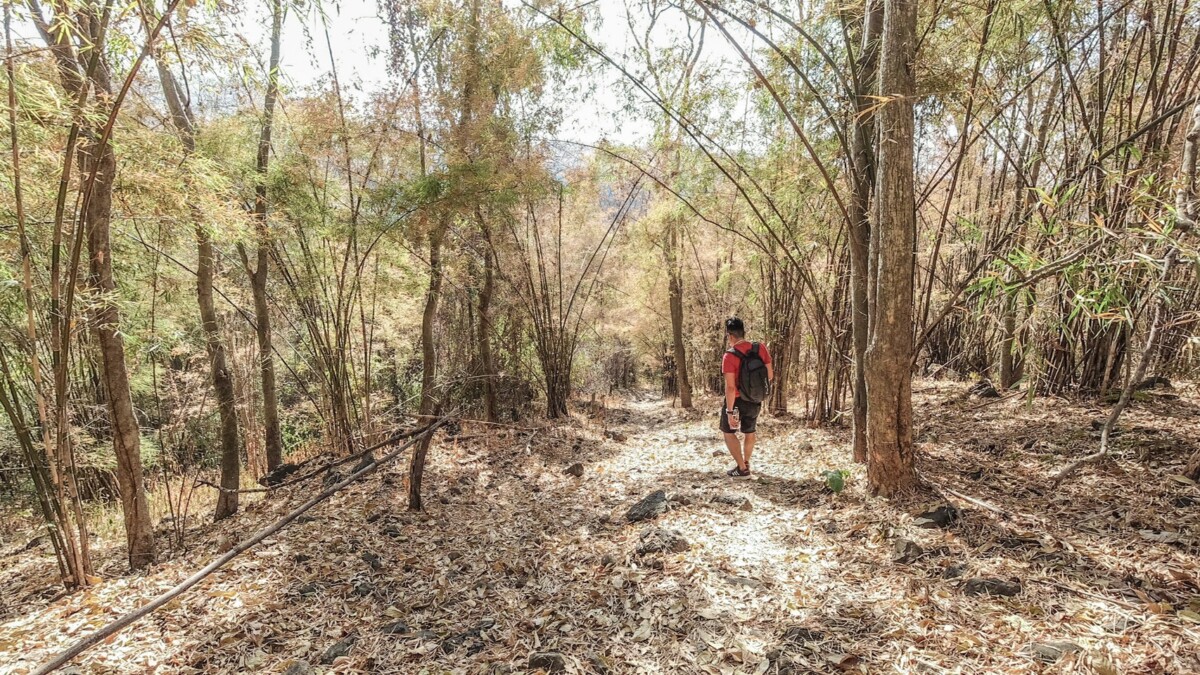 ⇑ภาพด้านบน จากลานจอดรถด้านบนเราต้องเดินทางเท้าลงไปตามไหล่เขาประมาณ 300 เมตร แล้วเราจะพบกับลำน้ำจาง เดินเรียบลำน้ำจางไปไม่ไกลนักก็จะถึงผาหอบ…ครับบบ